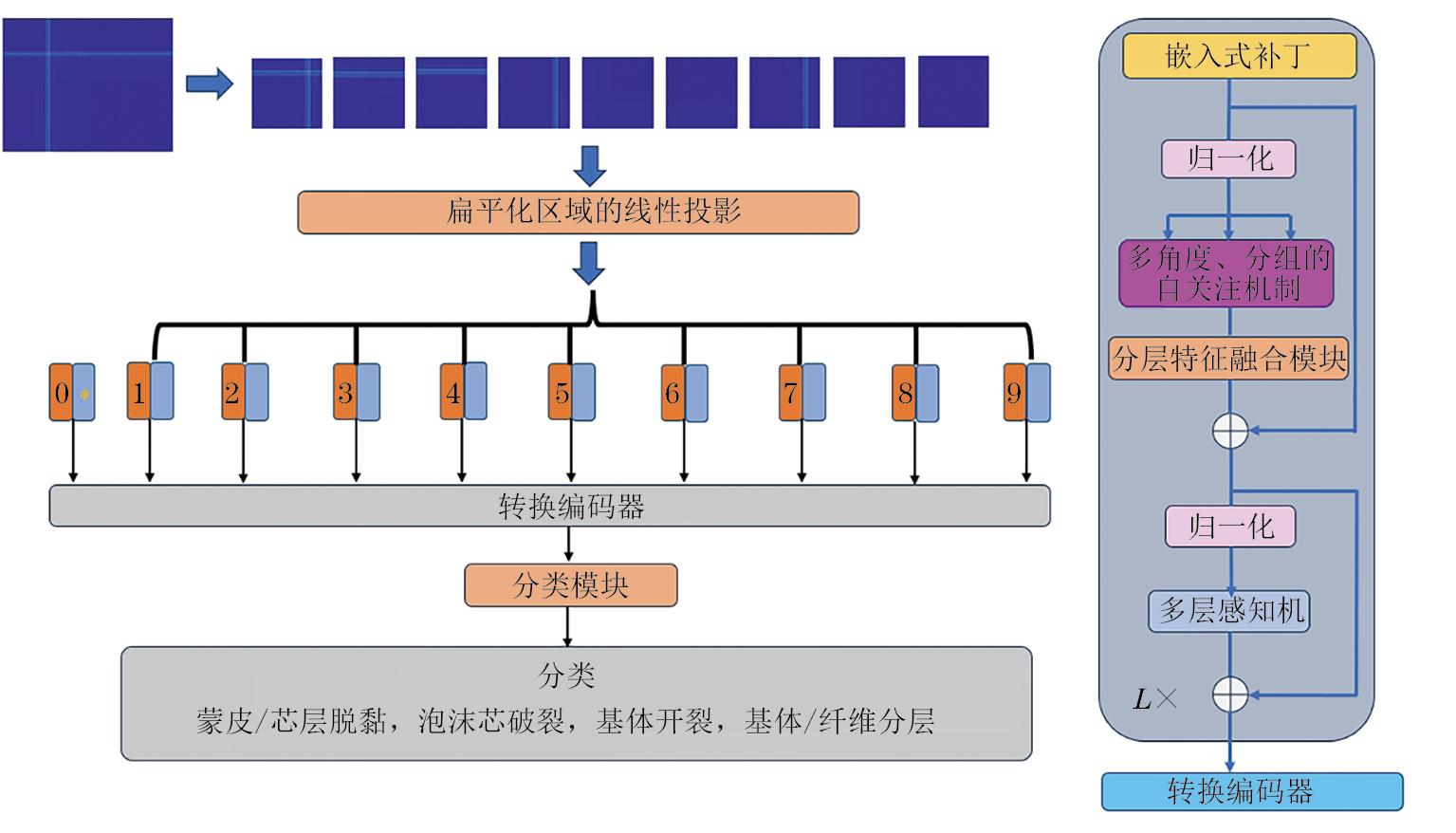 式中:E为每个补丁x的可训练嵌入先行投影,,;N为patch的数量。