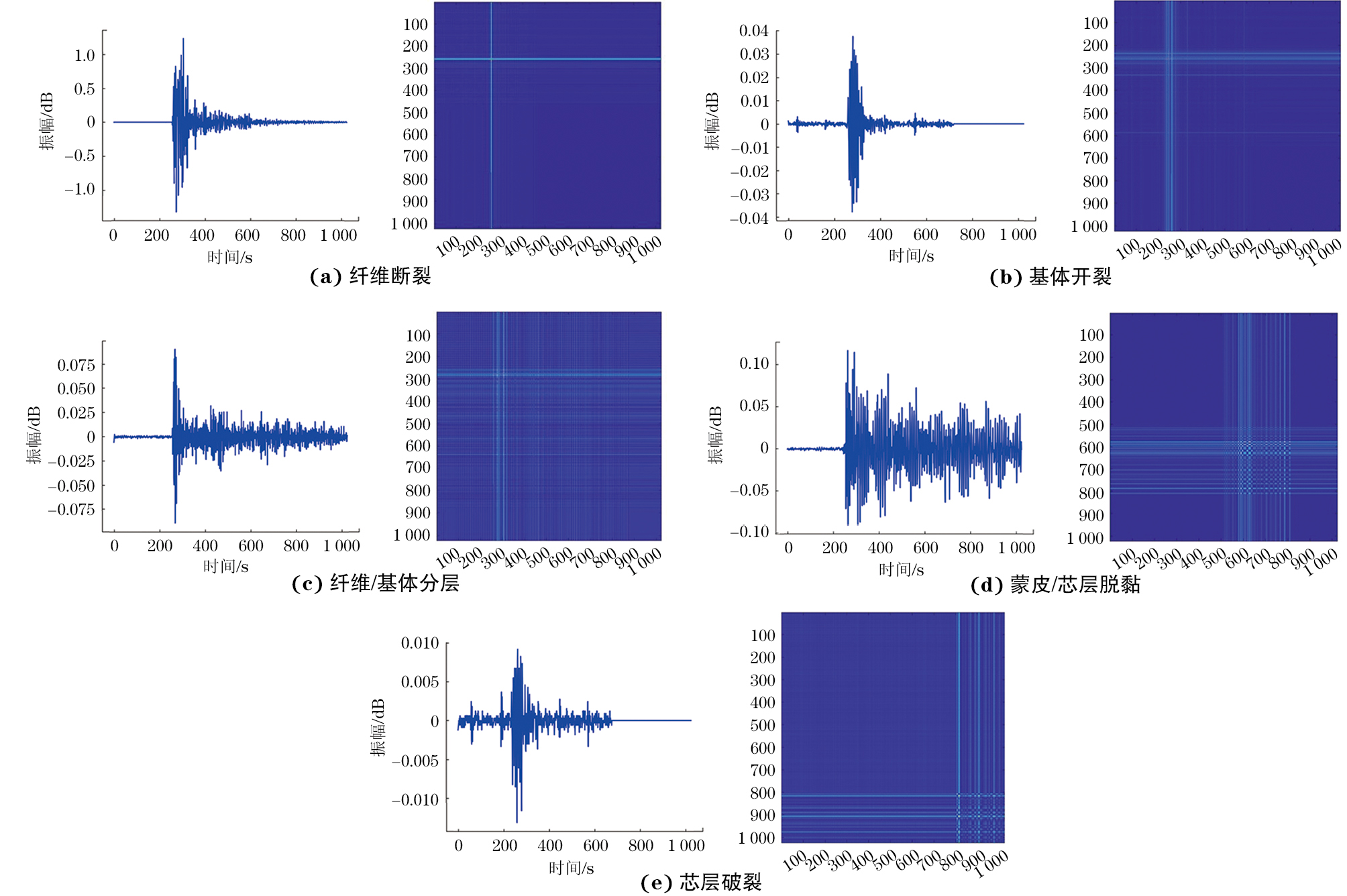 研究了改进的ViT模型对CFRP-PMI夹层复合材料的损伤识别能力,文章所用试验数据为AE系统采集到的声发射波形数据,然后将一维时间序列信号转化为GASF图,形成模型训练数据集,如图8所示。GASF特征图包含了由一维时序信号和特征转换以及合成的信息[10]。ViT模型通过学习特征之间的差异进行分类[11]。