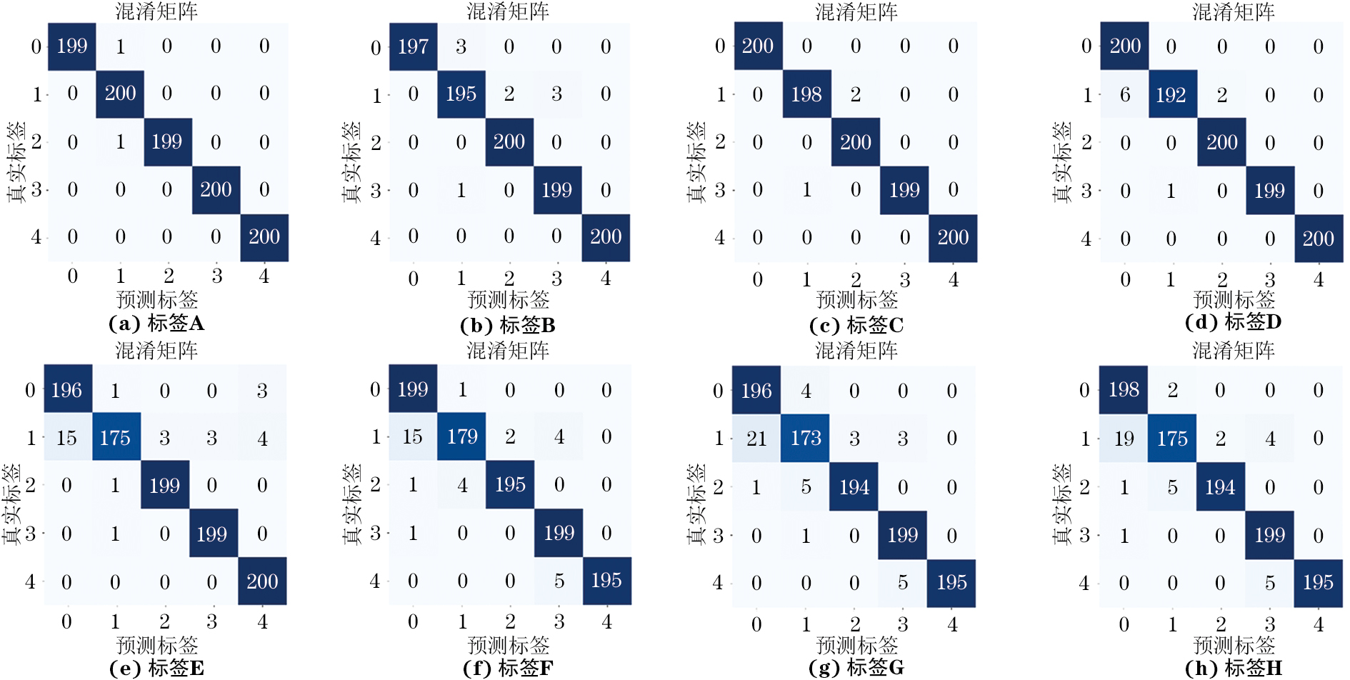 各模型分类准确率对比如表3所示,可见,文章提出的GASF-ViT-HFF模型在测试集中表现出了最高准确率,达到99.8%。即,将HFF模块与ViT结合能够有效提高模型分类的准确率,尤其是在局部特征不明显的情况下,该方法通过特征融合进而提升模型性能。并且,文章将短时傅里叶变换(STFT)频谱图输入到所提出的模型中进行测试,在测试集上的准确率达到96.1%,表现出较好的鲁棒性。在均以GASF图作为输入时,与Efficient network(Efficientnet)、Convolutional next(ConvNeXt)、Class-attention in image transformers(CaiT)以及Convolutional vision transformer(CvT)模型相比,ViT模型表现出卓越的性能,准确率仅低于插入HFF模块的ConvNeXt模型。这是因为HFF模块增强了局部特征融合。试验结果表明,文章所提出的GASF-ViT-HFF模型在CFRP-PMI夹层复合材料的损伤分类任务中表现出优秀的性能,大量的AE波形数据能够使得ViT模型得到充分的训练进而使得分类准确率更高。